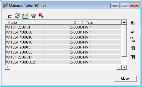 Use the Material Table utility to review and edit OptiStruct materials.