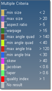 element criteria in the criteria file.Note: As long as the Criteria File Editor is open, you cannot modify the legends in the Element Quality View.