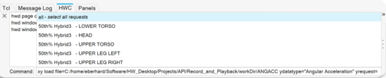 - HyperWorks Command (HWC) language, which records and plays back workflows in HyperWorks, supports the import of XY curves driven by the Build Plots dialog. Supported options include single file support, multiple input (File- and Subcase-Sets) and all plot options.