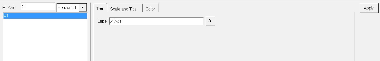 (horizontal) axis. The primary axis is the default axis. Like XY plots, from the Axis list, use the Axis option menu to add up to five