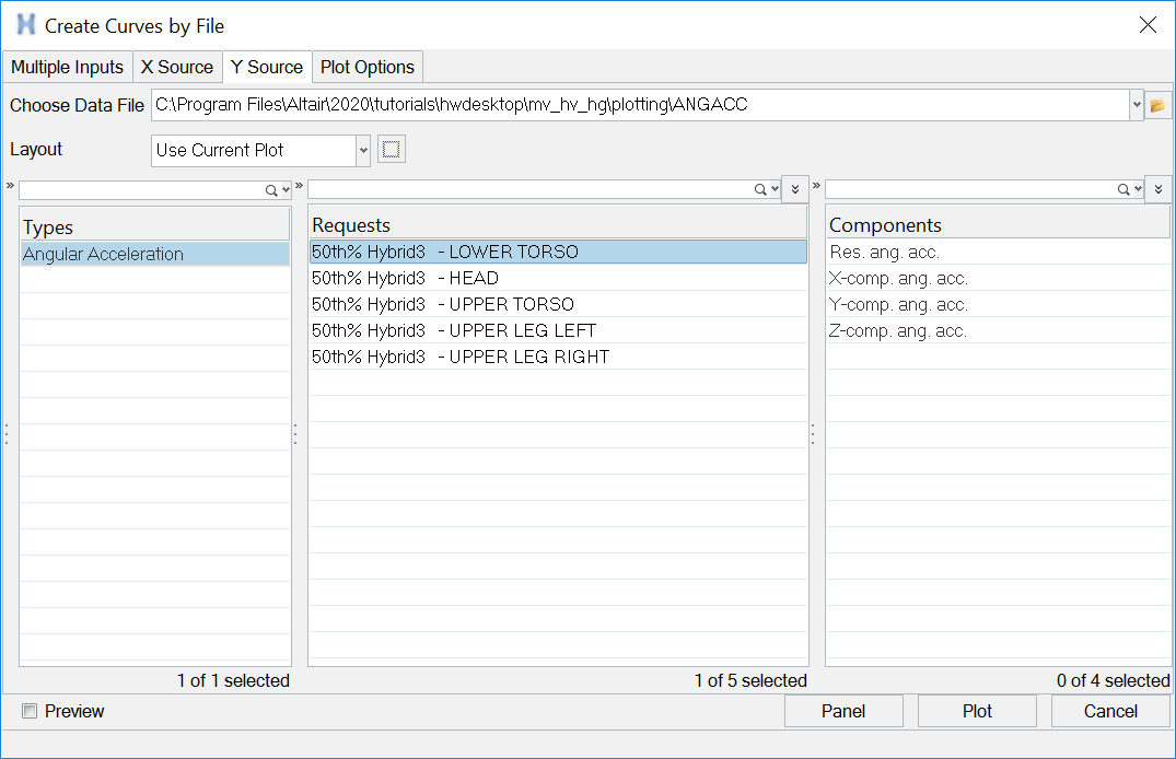 Plot curves for multiple runs and multiple subcases for a component.