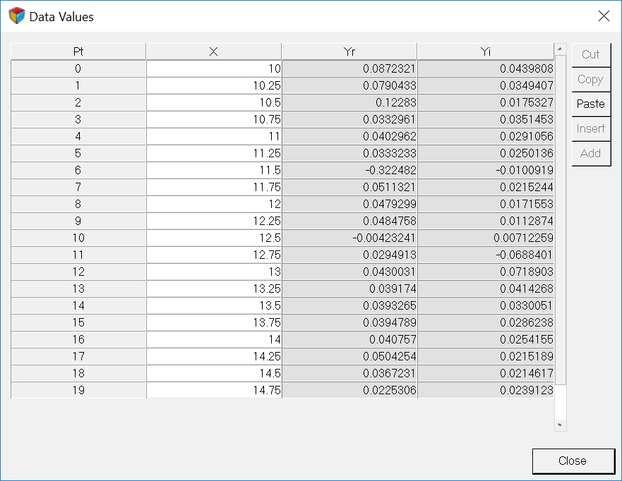 a larger dialog containing all X, Y, and Y2 data points.