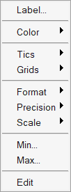 - Displays the Line grid style. If you select Lines, and right-click on the axis again, a different context menu is displayed. This menu displays options also found on the Axes panel.
