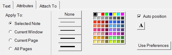 - You can choose to apply the attributes you select to the Selected Note, the Current Window, the Current Page, or All Pages.