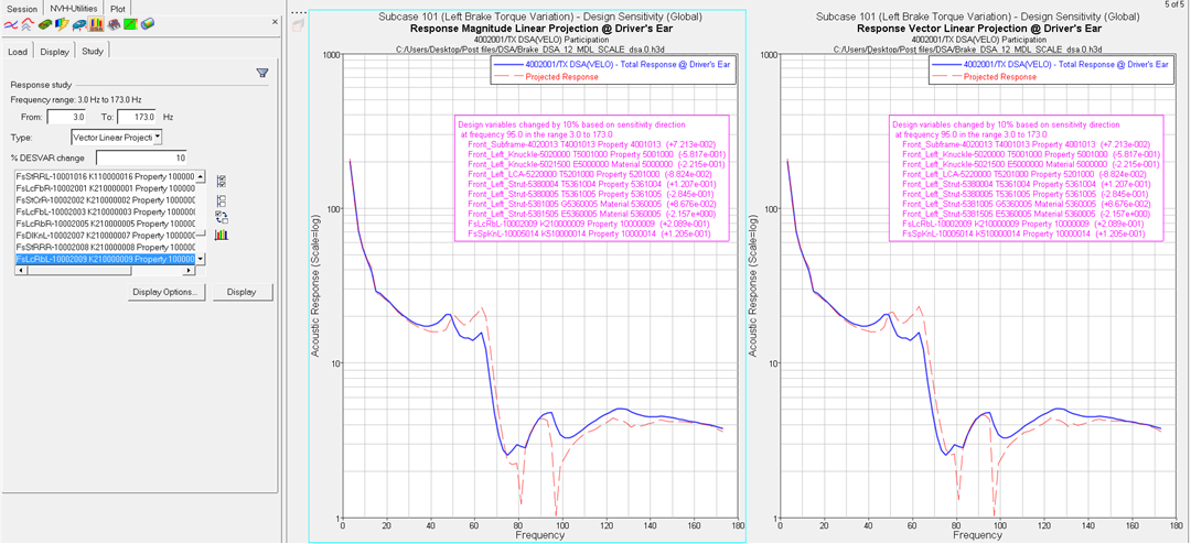 Perform a linear projection response study after plotting the design sensitivity curves.