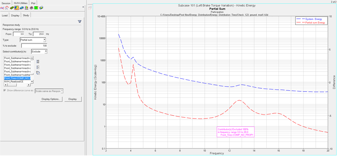 - Shows a difference curve between the original energy distribution analysis response and the Partial sum or the Modified energy energy distribution analysis response curves.