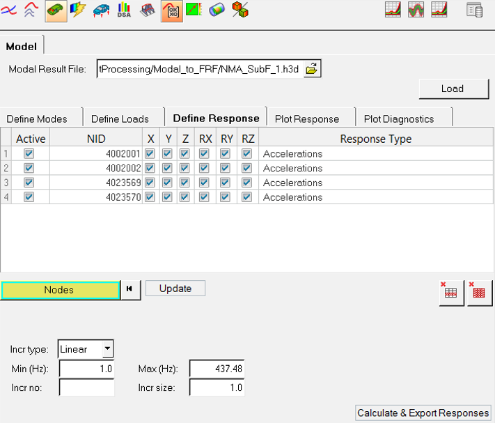 Figure 1. NVH Utilities Browser - Modal FRF - Model tab/Define Response subtab
