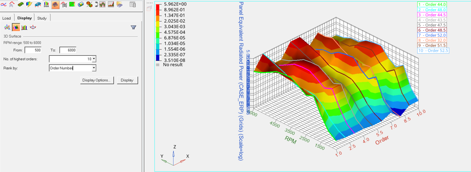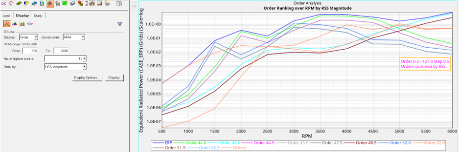 - RSS Magnitude - Orders are ranked by the root sum of squares of the magnitude of the order at selected frequencies. Available for 2D Line and 3D Surface plots.