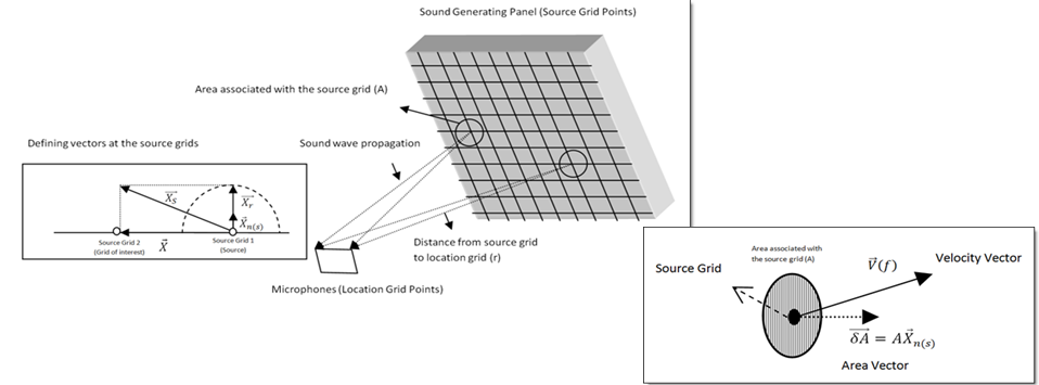 Radiated Sound Output using Rayleigh’s Integral can be requested for grid points on the structural surface and in the exterior acoustic field. Grid points are used to represent microphones that record the radiated sound, sound power, and sound intensity.