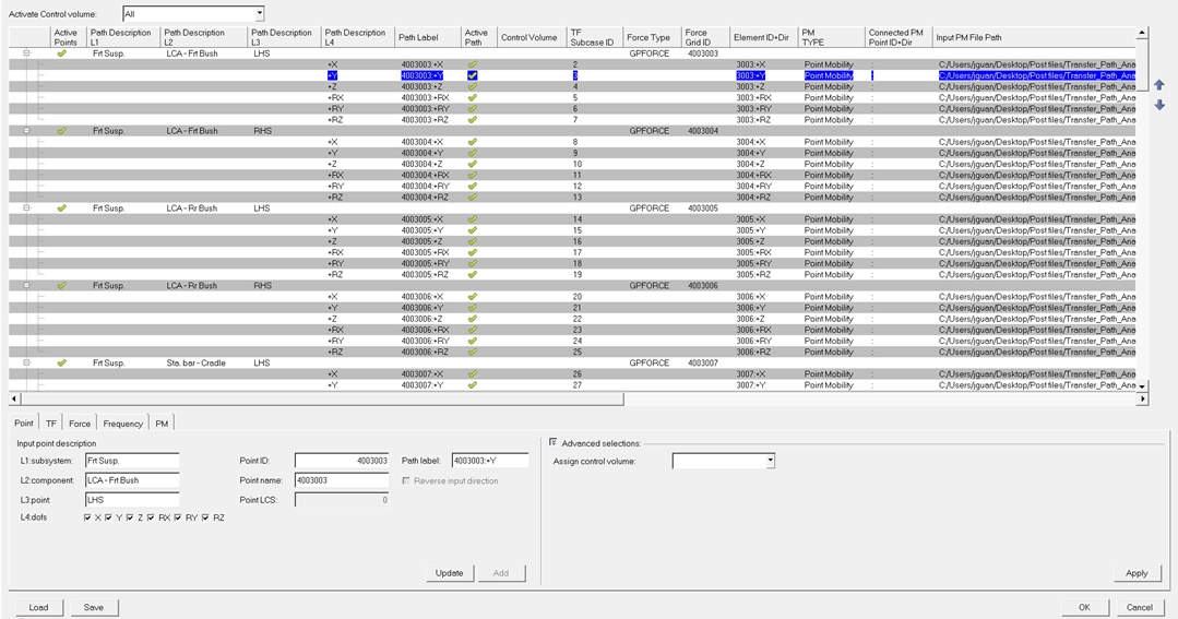 - The path control volume activation area, which allows you to activate paths in any control volume defined.