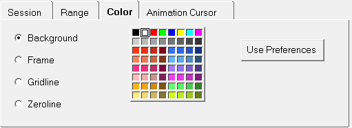 Any of the 64 colors in the color palette can be assigned to plot elements such as plot background, frame, grid lines, and the zero line.