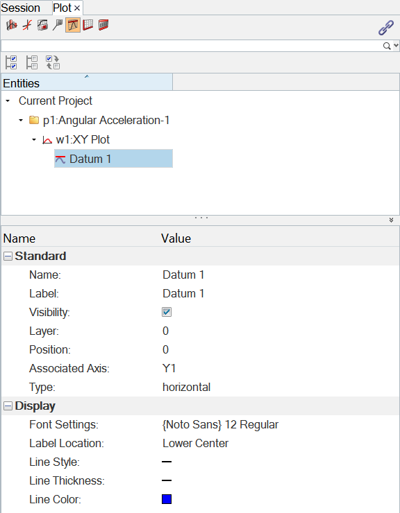 datum line displays the datum line's properties in the Entity Editor.
