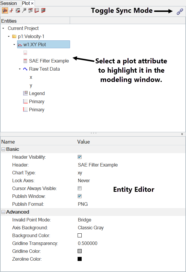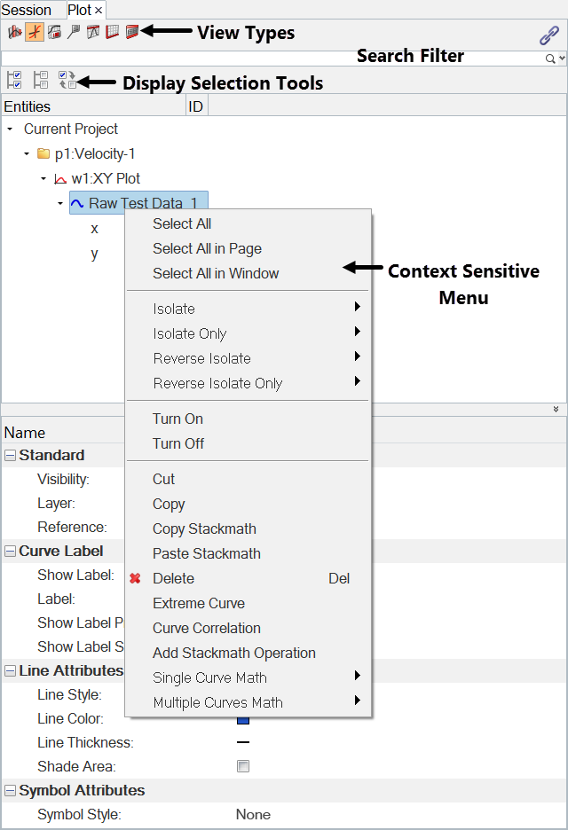 The following options can be used to change the display state of various entities in the Plot Browser tree.