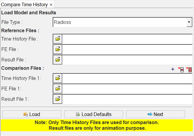 Click the add button to add more than one set of comparison files (time history and result files).