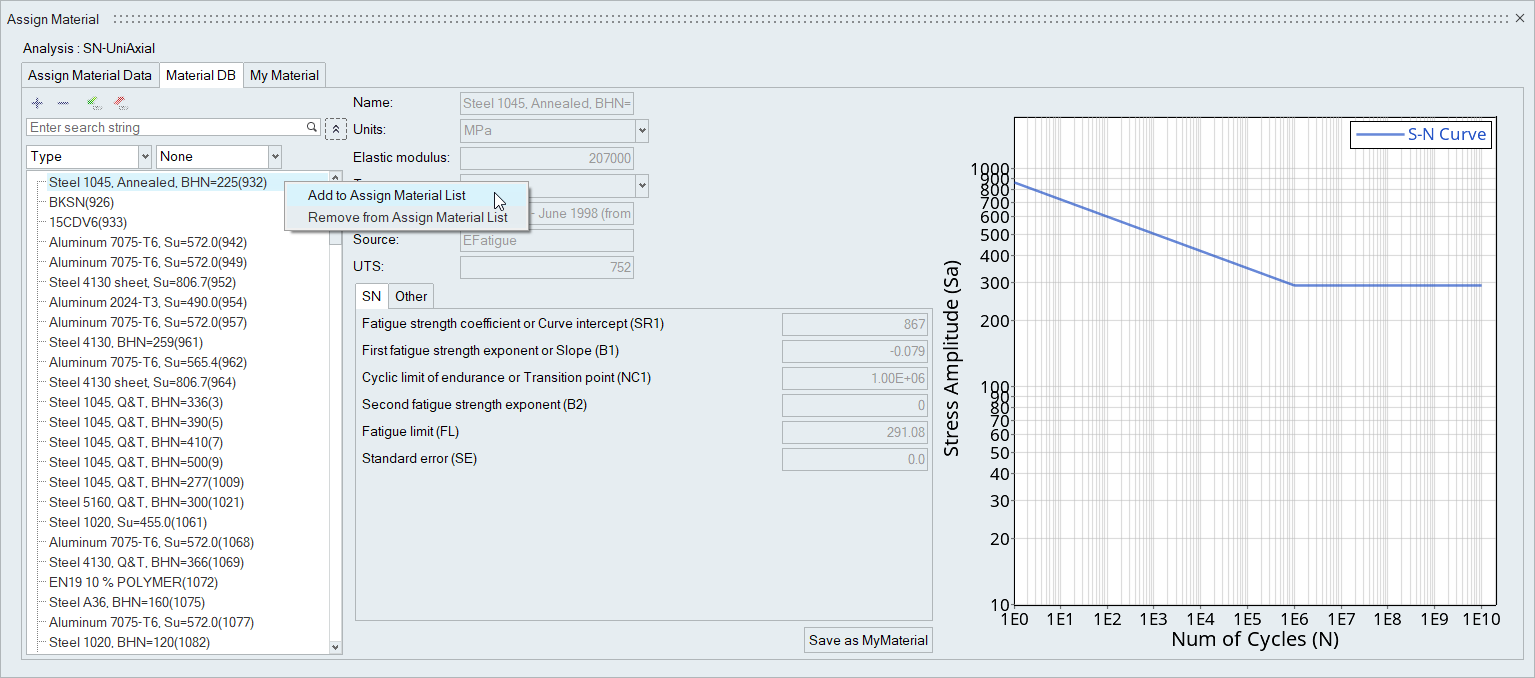 Right-click on a material and select Add to Assign Material
