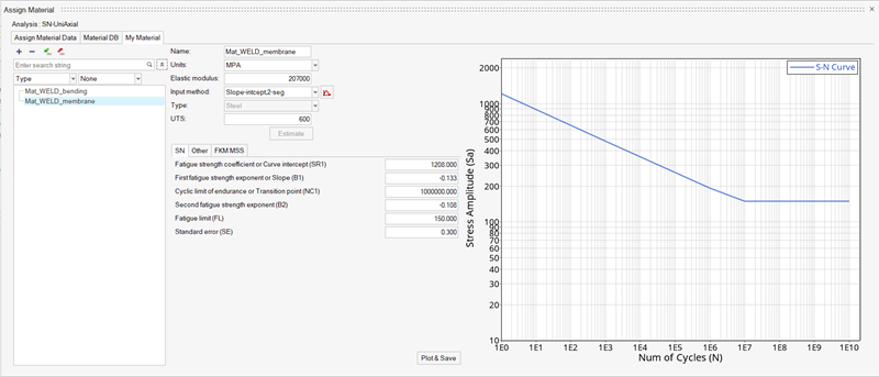 The materials available and their corresponding properties are based on the fatigue module that you select. If SN or Weld is selected, materials with SN properties are listed. If EN is selected, materials with EN properties are listed.
