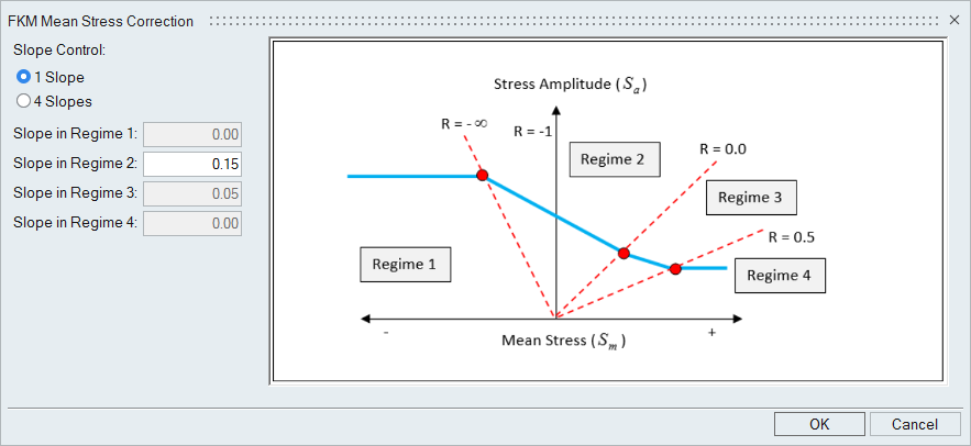 There are 2 available options for FKM correction in HyperLife. They are activated by setting FKM MSS to 1 slope/4 slopes in the Assign Material dialog.