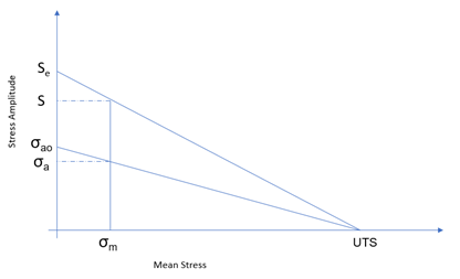 The safety factor (SF) based on the mean stress correction applied is given by the following equations.