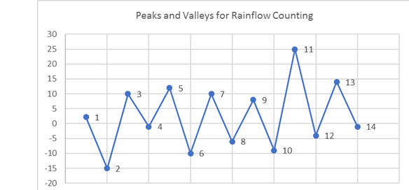 Figure 8. Peaks and Valleys for Rainflow CountingClearly, load point 11 is the highest valued load and therefore, the load history is now rearranged and renumbered.
