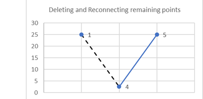 Figure 6. Delete and Reconnect Remaining PointsThe same process is applied to the remaining points:(6) (7) In this case, , so another cycle is extracted from point 1 to 4. After these two points are also discarded, only point 5 remains; therefore, the rainflow counting process is completed.