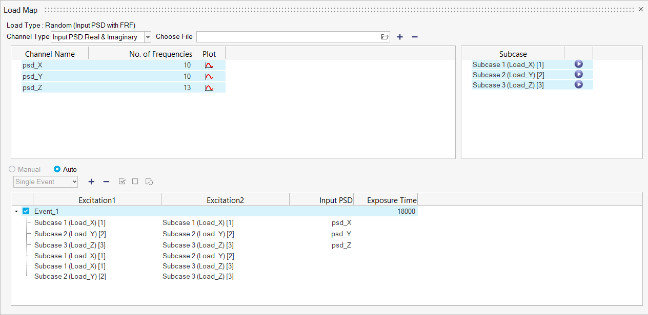 Figure 5. Event Creation in the Load Map Dialog for Random Fatigue with FRF Stresses and Input PSD
