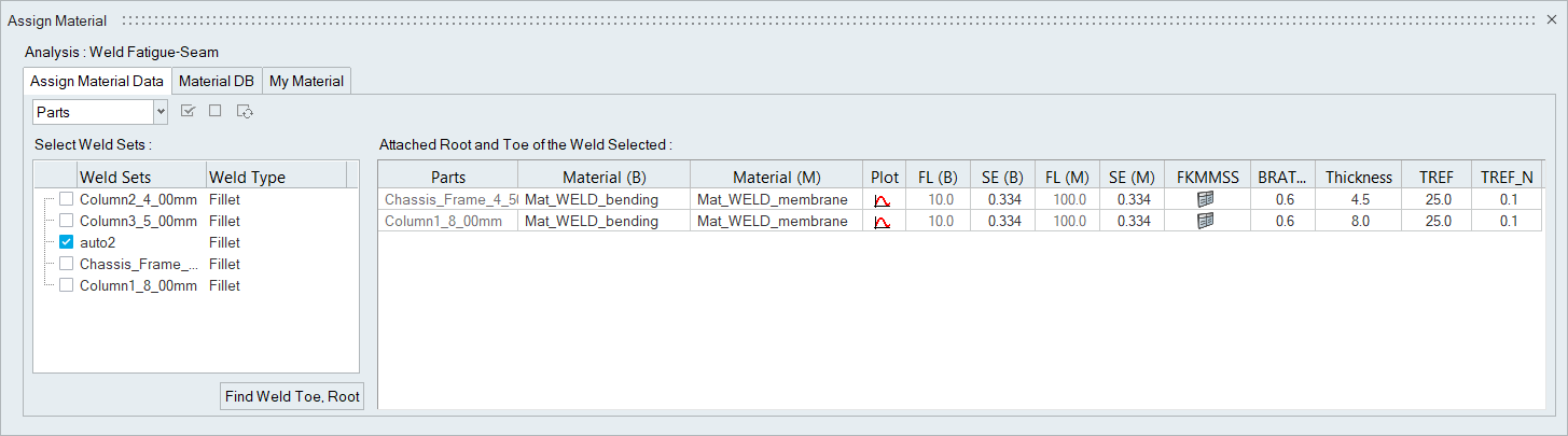 HyperLife evaluates failures at root and toe when a weld element is CQUAD4. If CTRIA3 is used for a weld element, only toe is evaluated.