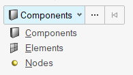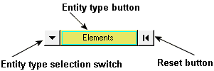 In idle mode, the entity selector limits your selection to a single entity type in the modeling window. For example, if the entity selector is set to Elements, only elements are available for selection. If it is set to Nodes, you can draw a window around the entire model and only the nodes will be selected. After performing a selection, the number of selected entities appears in parenthesis.