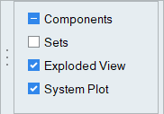 The microdialog lists the available entity types in your model that you can show/hide. The checkbox next to each type of entity indicates its current display state. A checked checkbox indicates that all of the entities of that type are displayed. A checkbox with a line indicates some of the entities of that type are displayed, but not all. An empty checkbox indicates that there are no entities of that type displayed.