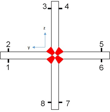 - For T and L welds, the coordinate system of the 1D beam element is oriented in such a way that the Y axis of the coordinate system points to Location 1 of the weld and the Z axis of the coordinate system points to Location 3 of the weld element.