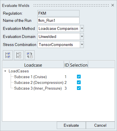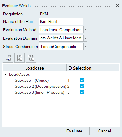 Figure 1.The Evaluate Welds dialog opens. - Enter a name for the run.