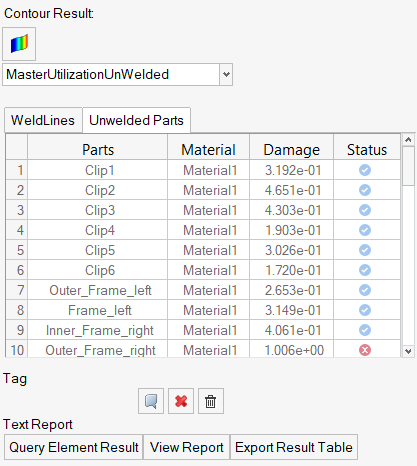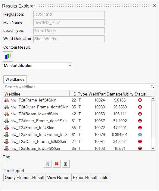 Text output contains the details of the critical evaluation locations and any element results that have been queried.