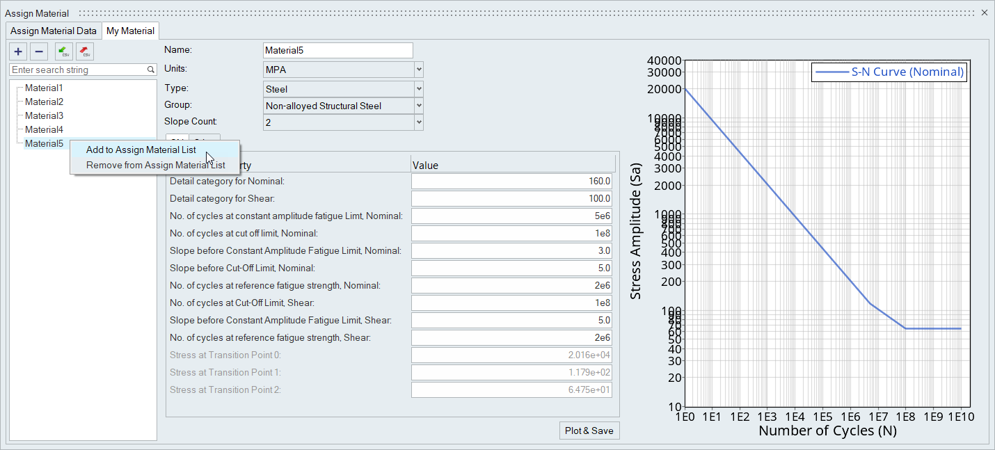Using the SN and Other tabs, set the material properties.