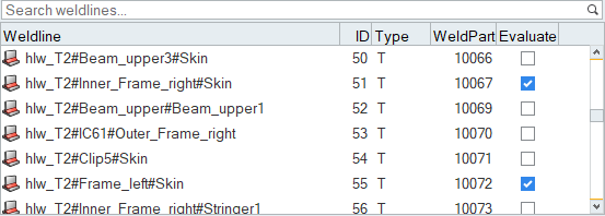 - Use the search bar in the weld line browser to find and filter weld lines.