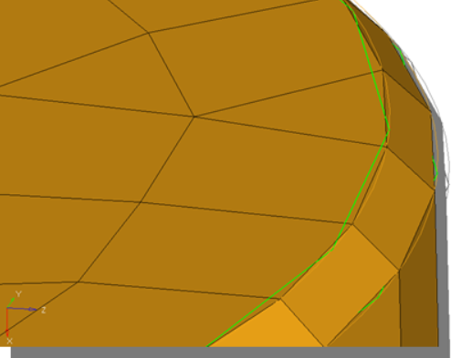 | feature angle | Specify the maximum distance that the selected entity must be within to be included in the selection. When you select entities by face, attached adjacent surfaces or elements are progressively selected as long as the angle between them is less than or equal to the feature angle. This value is used in element cleanup. |