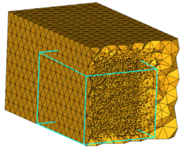 Use the Refinement Box subpanel to define a specific box-shaped volume within an existing tetramesh in which to generate finer mesh.