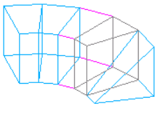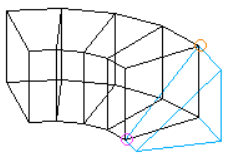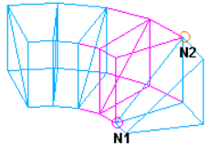 ![]() Figure 13. Opposing Corners Selected on Face of Hexa Element. Select opposing corner nodes on the face of the hexa element to indicate how to split the element. |