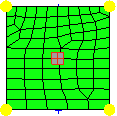 Use the Checks subpanel to use the functions of the Check Elements panel on a newly-generated mesh before storing it in the database. The tests are the same as on the Check Elements panel, and elements that fail a quality test are highlighted in red. Only displayed elements are tested; the display of elements is controlled by the local view panel. The Checks subpanel operates on a by-face method. The active highlighted face serves as a frame of reference for meshing, smoothing, and display operations. To select another face, select the face's icon in the modeling window.