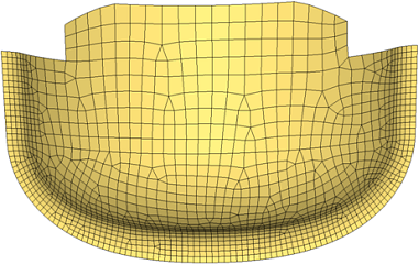 Uses quads primarily, but inserts trias when making density transitions, resulting in improved mesh quality.