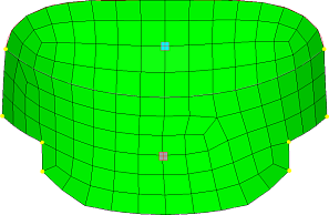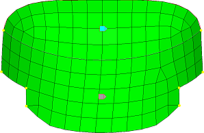 Surface Deviation meshing only works in an automatic mode; interactive meshing with the Secondary Automesh panel is not possible. However, use the refine function to set a specific desired mesh size for a point, line or surface face. This option accesses another temporary subpanel that is secondary to the Surface Deviation subpanel. From this subpanel, select fixed points, lines, or surfaces to define an area in which you desire a more refined mesh. You can specify a different element size for these areas, which displays as a color-coded numeric value: yellow for points, green for lines, or red for surfaces. An option to show all or show active toggles the view of these numeric values; show active displays only the refinement value for the most recently selected point, line or surface, while show all shows all values for all selected entities.