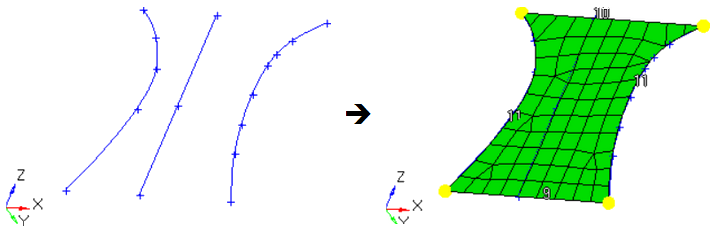 direction for all lines. The lines used to create the skin surface and/or mesh are automatically smoothed before it is created. As a result, the surface and/or mesh created has a single face. |