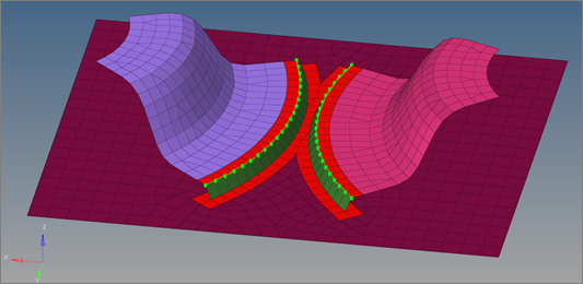 Use the Composites panel to assign and review the element material orientation of a mesh of shell and continuum shell