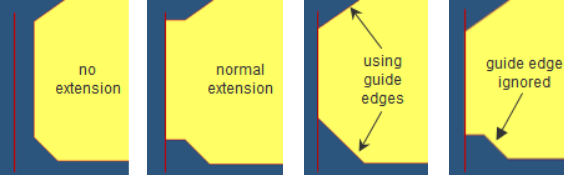 You can also automatically exclude some edges from consideration as guides by means of the minimum angle to guide edge field. Edges less than this angle relative to the extended edge will not be used as guides. This limit works for both the extend over edges and max extension methods.