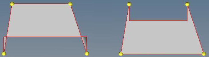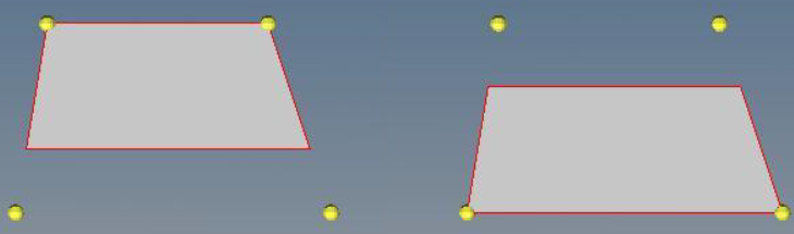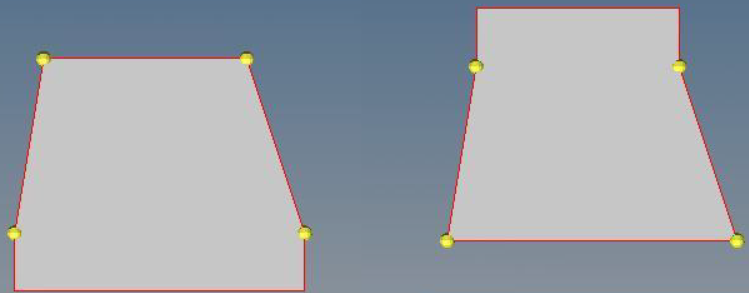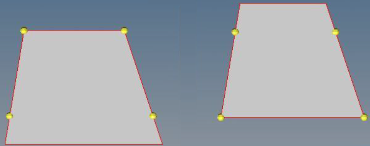 In some cases, extending or shrinking the parallel edges of trapezoidal surfaces without using guide edges can produce unexpected results. This occurs because the extension is performed normally to the edges being moved. In the case of shortened edges this can result in sliver-shaped remainders, because the non-parallel sides do not get shortened, as shown in Figure 2.
