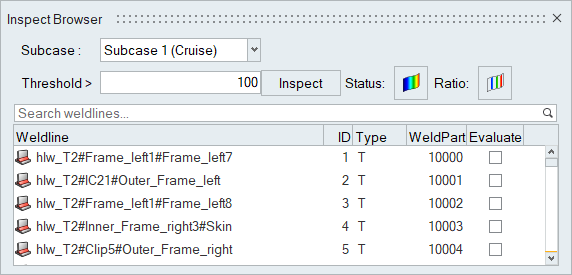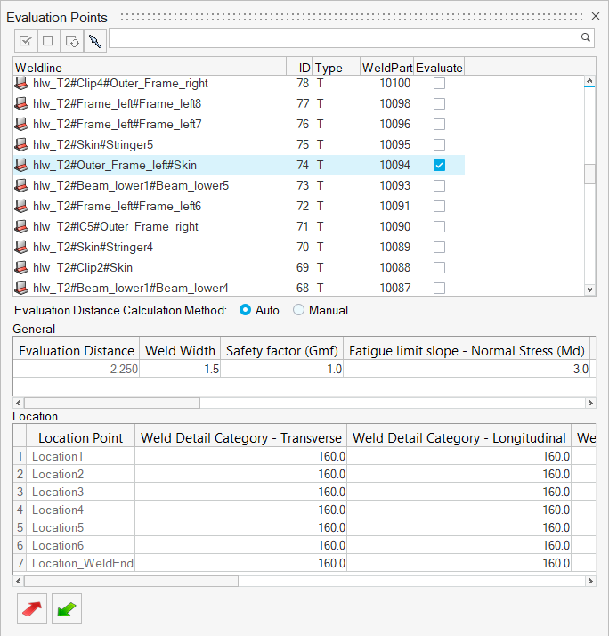 Note: The Evaluate checkbox should be activated. Any weld lines that are marked as critical in the screening process are automatically selected in the Evaluation Points dialog.