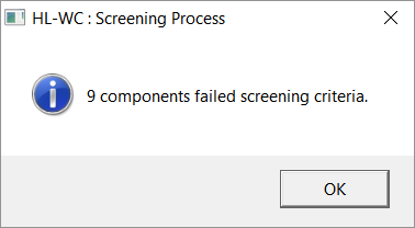 Once the screening is complete, a dialog will display the number of failed weld lines.
