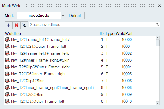 Select hlw_T2#Frame_left3#Skin from the weld line list.