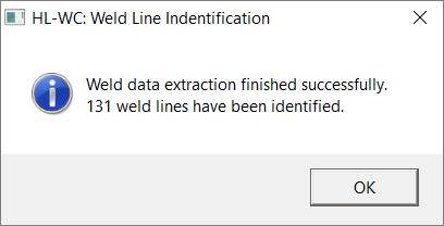 Once detection is complete, a message stating the number of weld lines identified is displayed.