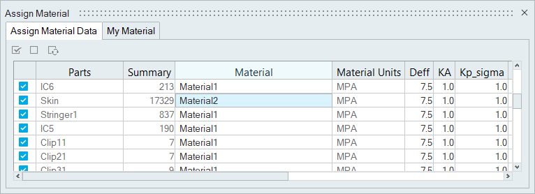 - For the part Skin, select Material2 from the Material drop-down menu.