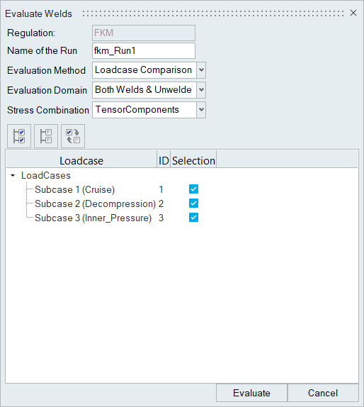 - Select Loadcase Comparison for the evaluation method.
