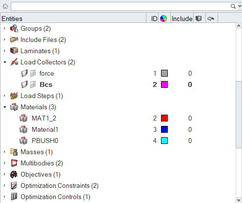 Performing an action on a child node affects only that item, be it a single load or the entire collection of elements in the model, which, in the example above, are collectively a child node of the components parent node. However, performing the same action on a parent node applies it to all children of that node as well. For example, in the image above, turning off the display of elements will not affect the display of connectors, geometry, or components (the parent node of the elements). However, turning off the display of components will turn off the display of connectors, elements, and geometry because they are children of the components node.